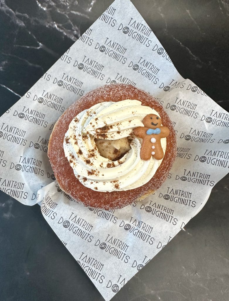 Brioche doughnut filled with a Gingerbread custard, rolled in cinnamon sugar topped with cream.