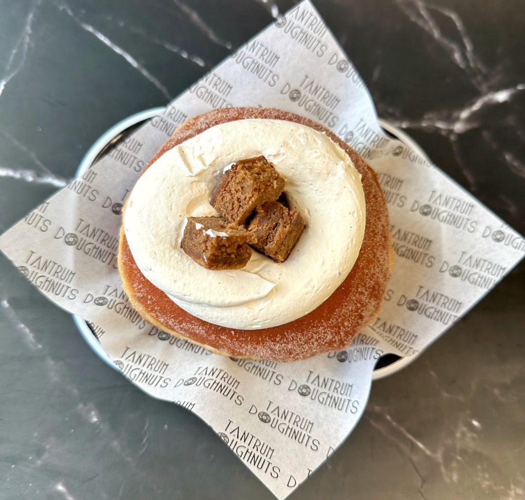 St Patrick’s Day Special-Brioche doughnut filled with a Guinness & chocolate pudding, topped with a vanilla cream and Guinness & chocolate brownie. Contains alcohol.
