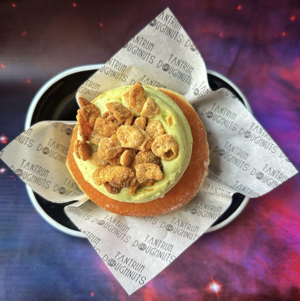 Star Wars Special-Crunchy nut and peanut butter custard filled brioche doughnut, topped with honey pistachio frosting & honey nut cornflake crunch.